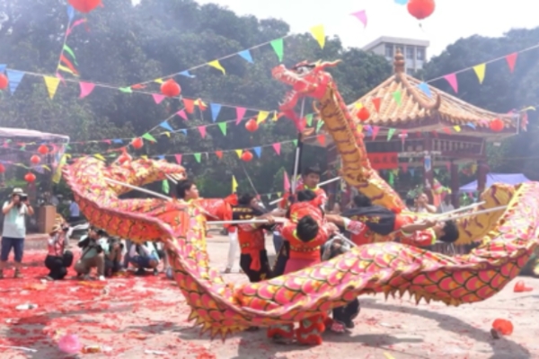 启动仪式后,巡游队伍有序经过主席台,最终抵达大湾狮子名山举行祭拜活动,长龙蜿蜒、雄狮舞动,场面威风凛凛。